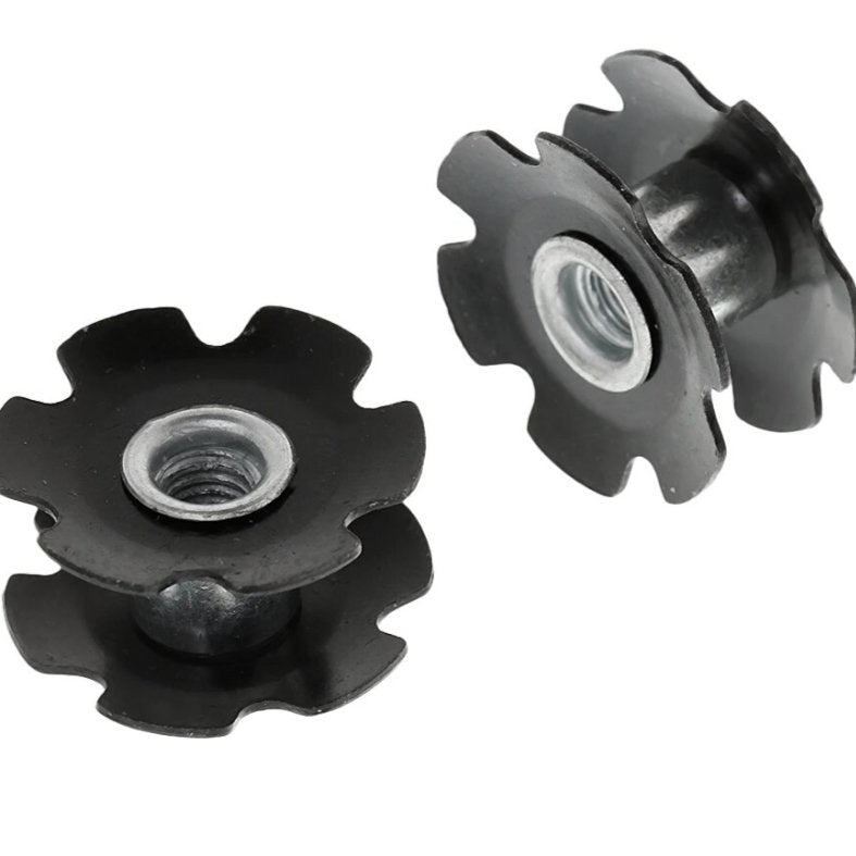 Piulița stea este compatibilă cu toate furcile de suspensie și rigide obișnuite cu tub de direcție de 1 1/8" sau conic (de exemplu, Fox, RockShox, Manitou). Fixează în siguranță capacul cuvetei de direcție pe tubul de direcție și este o componentă esențială la înlocuirea sau scurtarea furcii.