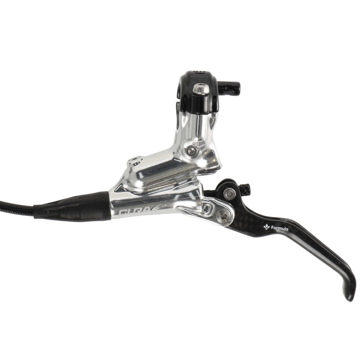 Set frână pe disc Formula Cura 4 | Manete de frână din carbon | Față și spate | 4 pistoane | Argintiu | Include plăcuțe | MTB / Enduro