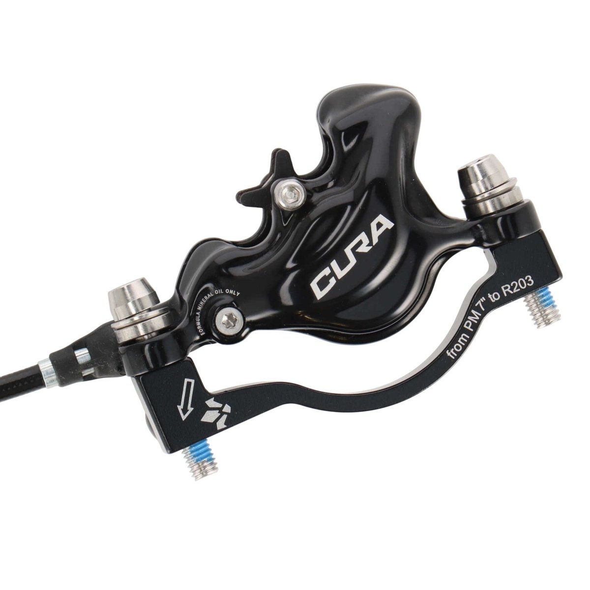 Frână pe disc față Formula Cura | 2 pistoane | furtun de 950 mm | negru lucios | incl. adaptor pentru disc de frână de 203 mm