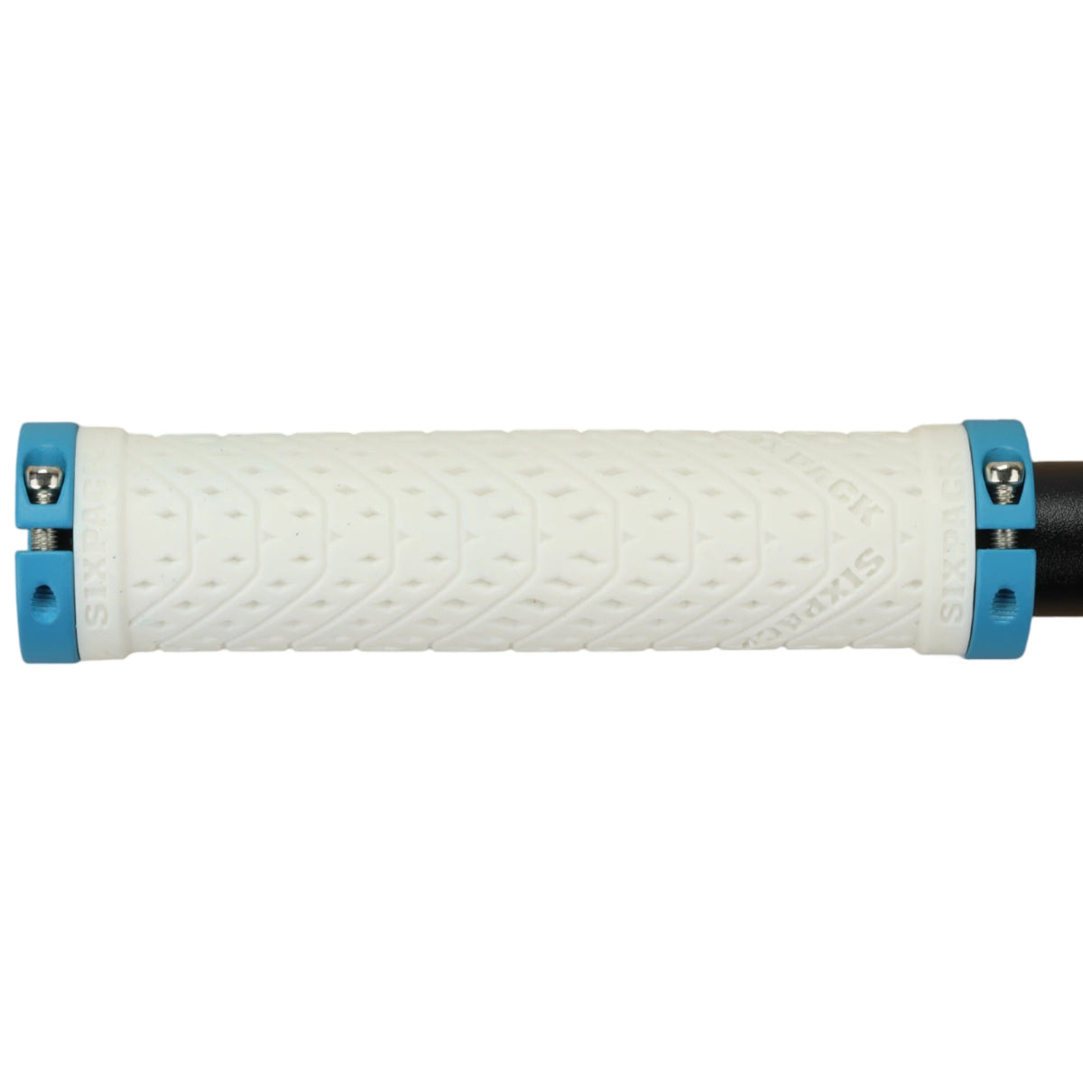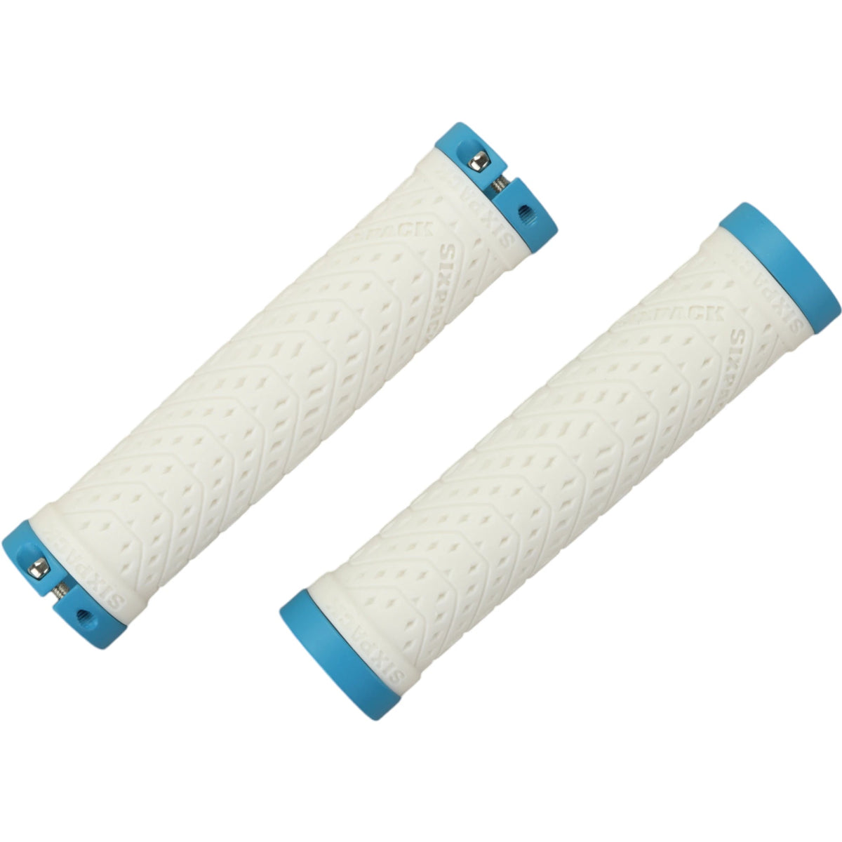 Mânere pentru bicicletă de munte Sixpack K-Trix, pereche, alb/turcoaz, cu fixare prin blocare
